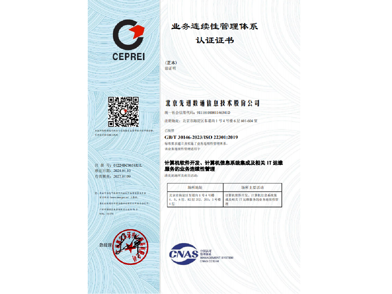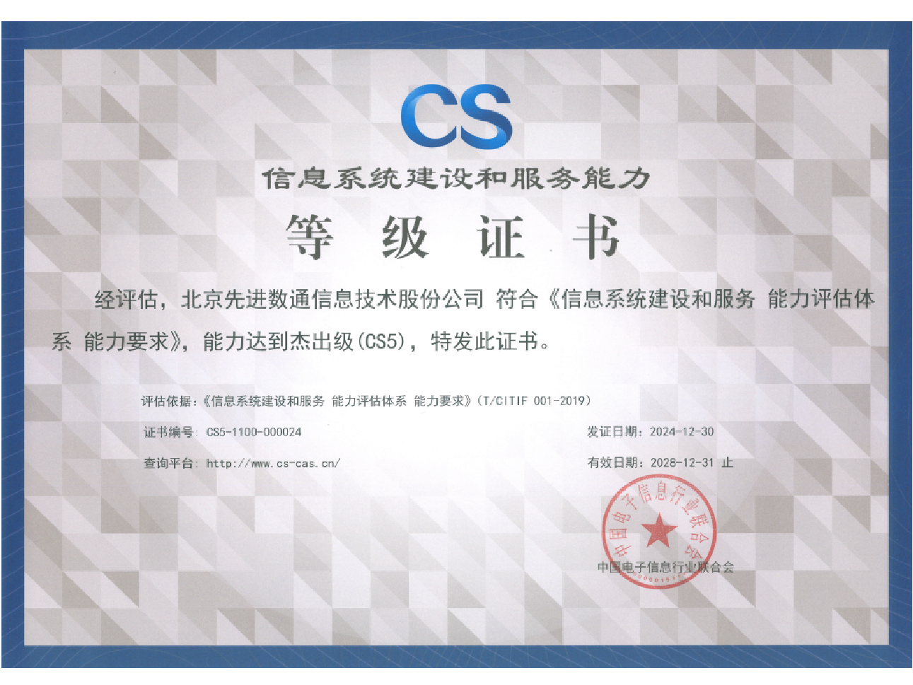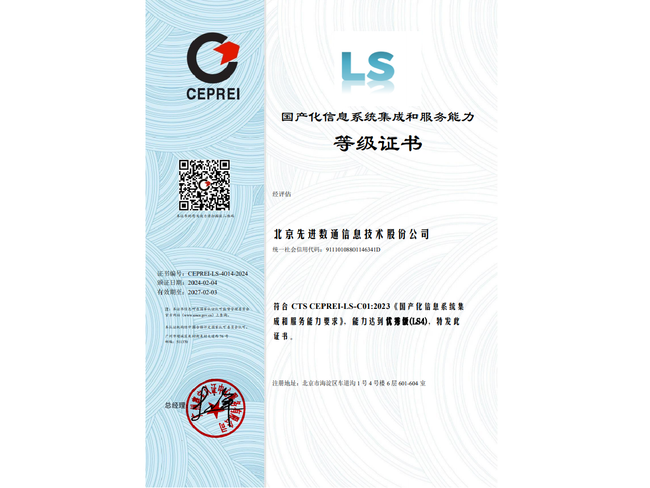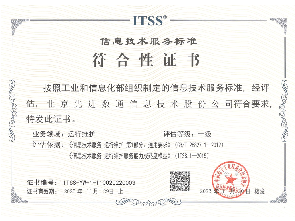 富易堂fyt富易堂先后取得CMMIL5、软件能力成熟度五级(SPCA 5)、信息系统建设和服务能力评估体系(CS)5级、ITSS成熟度一级、信息系统安全集成服务资质二级、信息系统安全运维服务资质二级、国产化信息系统集成和服务能力评估四级(LS4)、北京市企业技术中心等资质认证,并取得ISO9001、ISO20000、ISO27001、ISO14001、ISO45001、ISO22301、ISO37001、ISO28001、GBT29490、SA8000等标准体系认证,具备行业领先的技术开发、工程实施及服务保障能力。